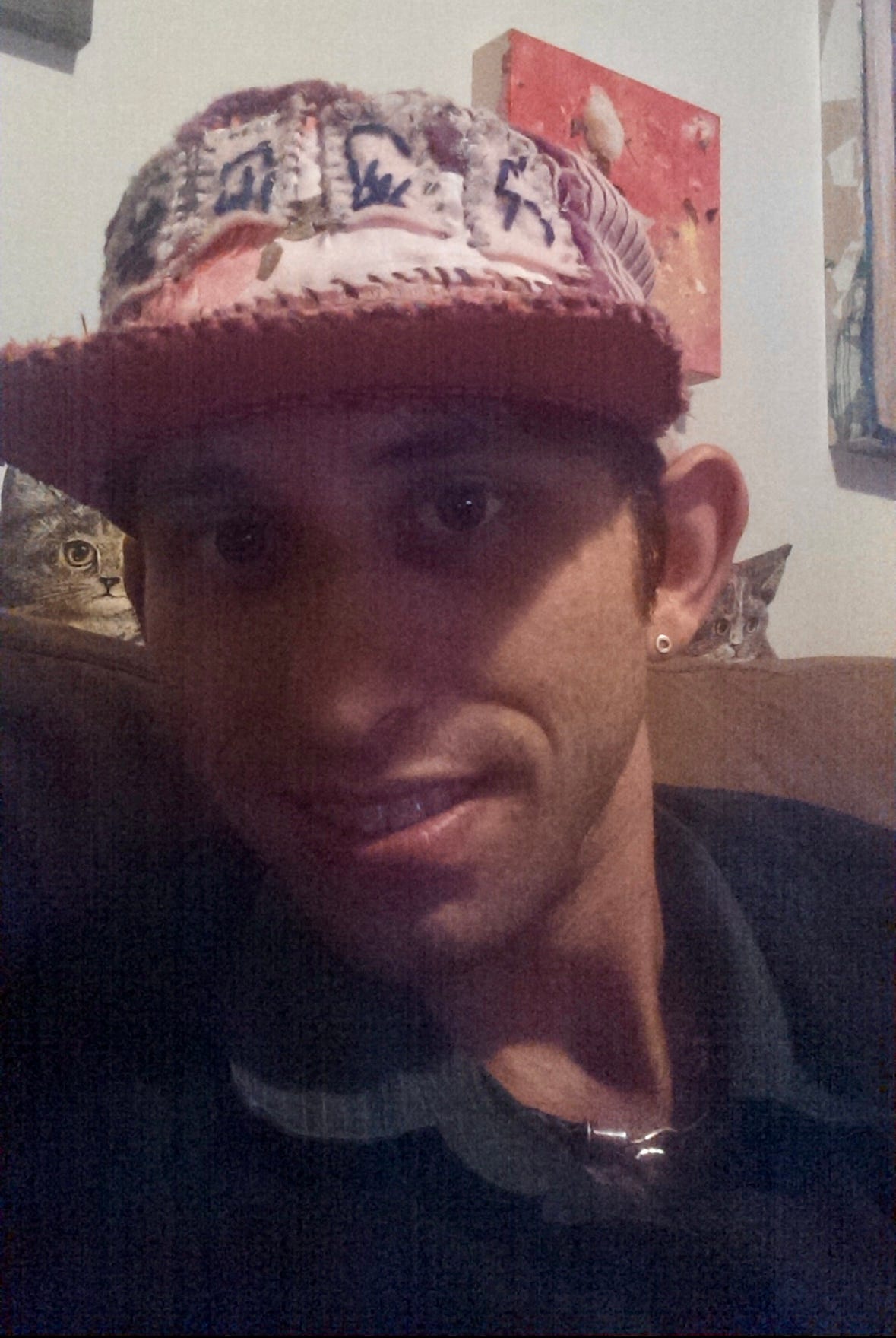DS: Oh no, that’s terrible. Well, I talked to Baxter and we were working on getting the work returned to him and it was packed in a black plastic bag. And he’s like, oh, just leave it on my front porch. And so he gave me the address and I left it on his front porch. And I don’t know how long he was gone for, but when he got home it was gone. So it’s kind of a sad memory. I don’t remember him being angry about it. We both thought it was going to be okay, but it wasn’t. He went to Yale pretty soon after that. So he left the state. Another memory of him was... So we used to play a lot of PBL Robots, this group that I was part of, which is a card game that was invented by a group of friends, and he sewed me a custom hat as my favorite character in that part in this game. My favorite character was this character named Unico Hemingway. And he sewed me a Unico Hemingway hat. It was like a pink trucker hat.