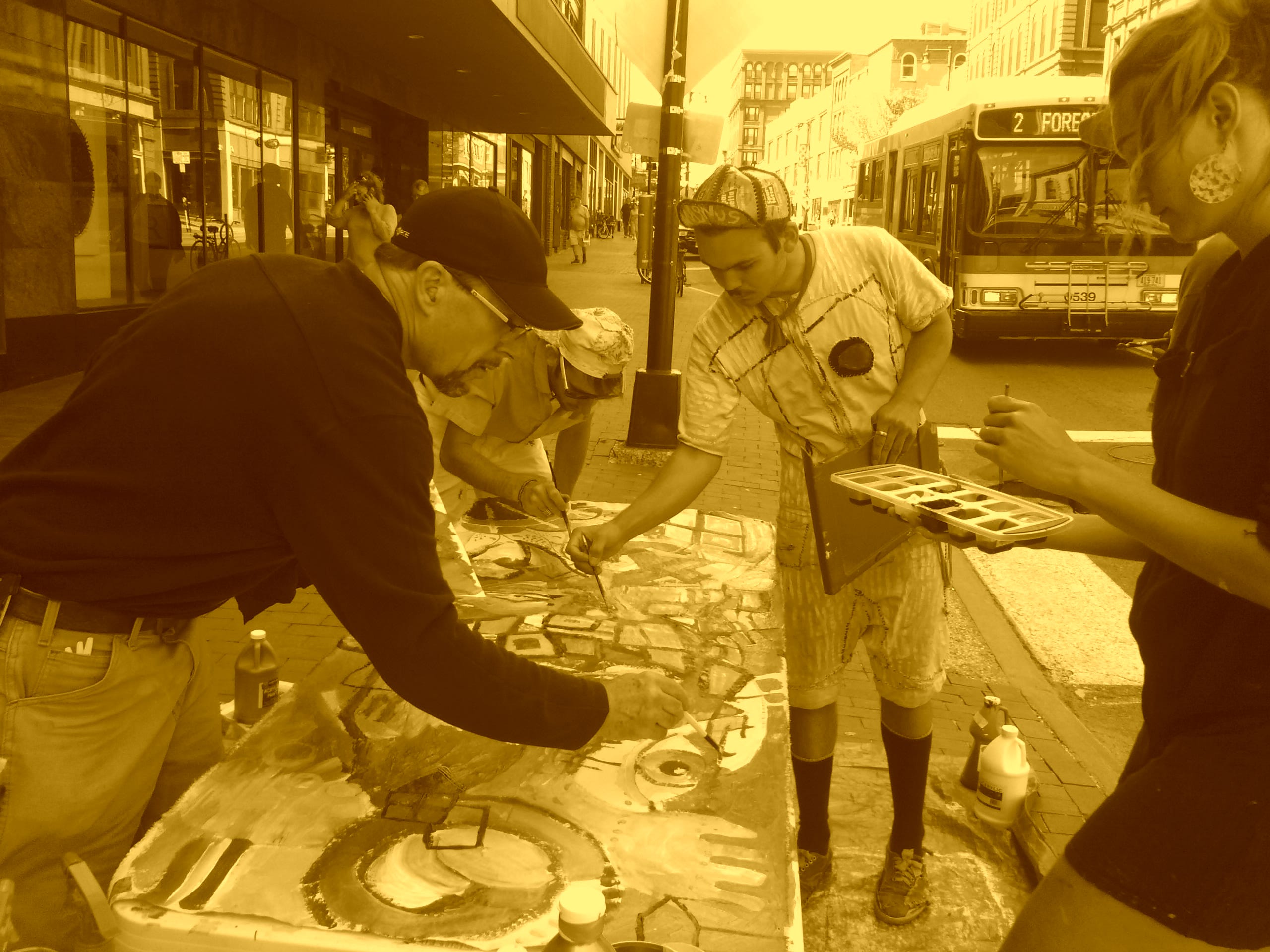 DS: I think my favorite memories of Baxter were the 12 hour painting marathons that we would do on the street in Portland. We would set up a table and have paints and things out, and every hour we would change the canvas. Anybody walking by on the street would be asked to join in.