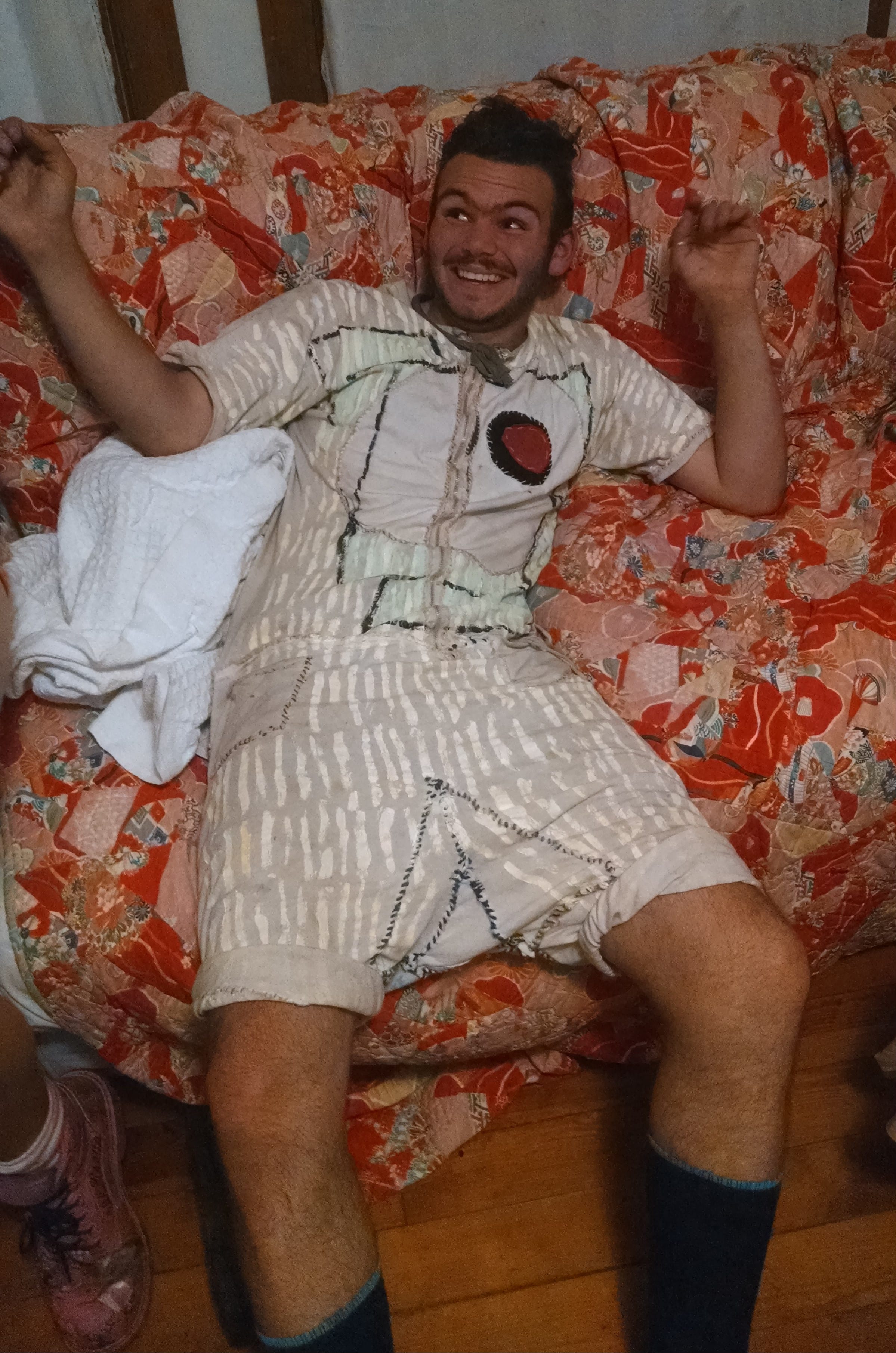 DS: My first memory of Baxter is at Art Night in I think probably 2014. Art Night was an event that was hosted by Will Hessian, Abbeth Russell, and John Sighless. And it happened religiously every Sunday. It would start at like 5 o’clock and it would go until the wee hours of the morning. And people would be making art. Somebody might be cooking. This was the Hidden Ladder Collective. Baxter was a very big part of it. He was sewing little dolls and hats and he was wearing a tail and a onesie that he had sewn out of scraps of fabric. He was a student at MECA at the time.